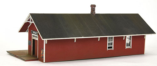 A very nice shortline depot, still in existence located close to our shop.. The kit is composed of a laser cut MDF core overlaid with scribed siding. Though the original had clapboard, the scribed siding looks so good you can hardly tell the difference. It also allow us to use a thinner material which looks more prototypical. It looks really nice as you can see in the photos... Easy to build, easy to paint and finish...Footprint is 7 7/8"" wide by 3 5/8" deep over the platform.