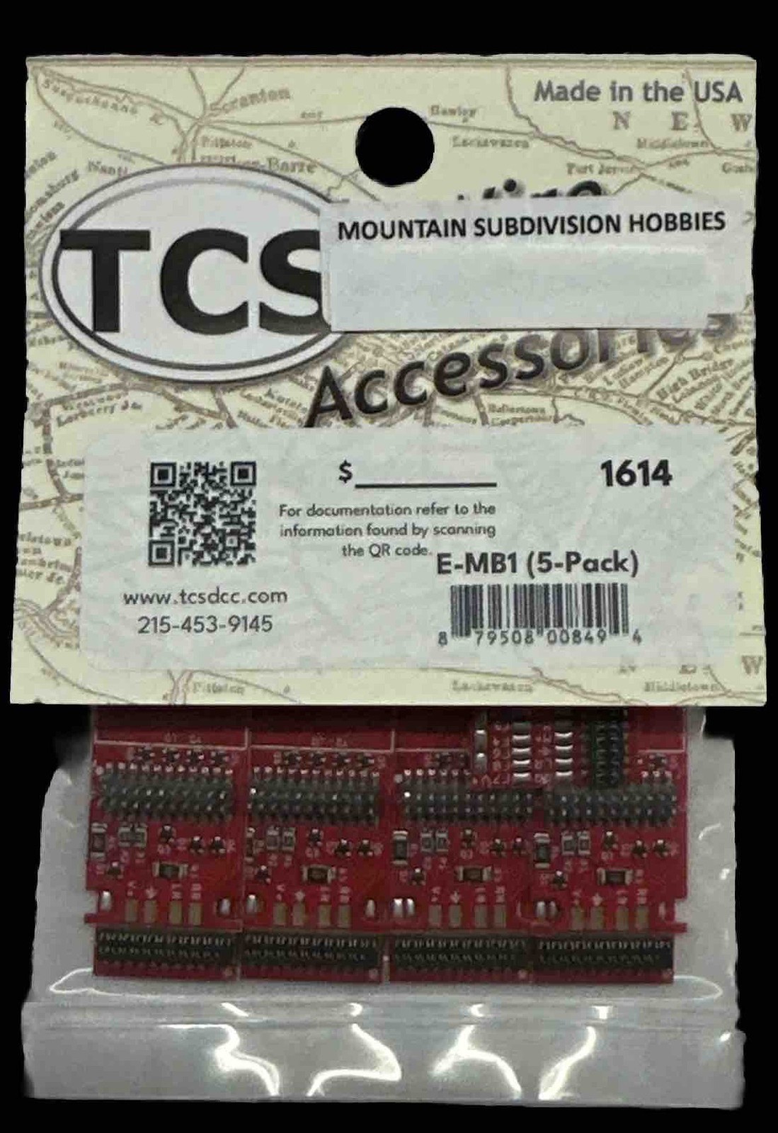 The E-MB1 has been designed to meet NMRA standards, and is compatible with any NMRA-compliant 21MTC decoder with 4 or more lighting outputs, such as TCS’ WOW121 or EU821 decoders (sold separately).